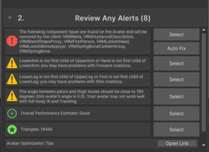 揺れる部分や重いマテリアルがあるとその分アバターは重くなりパフォーマンスランクはそこだけでVeryPoorになるケースもあります。